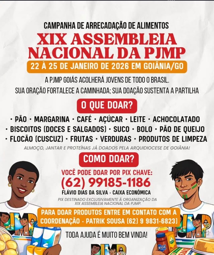 De 22 a 25/01/2026, a PJMP Goiás acolherá jovens de todo o Brasil na XIX Assembleia Nacional da PJMP
